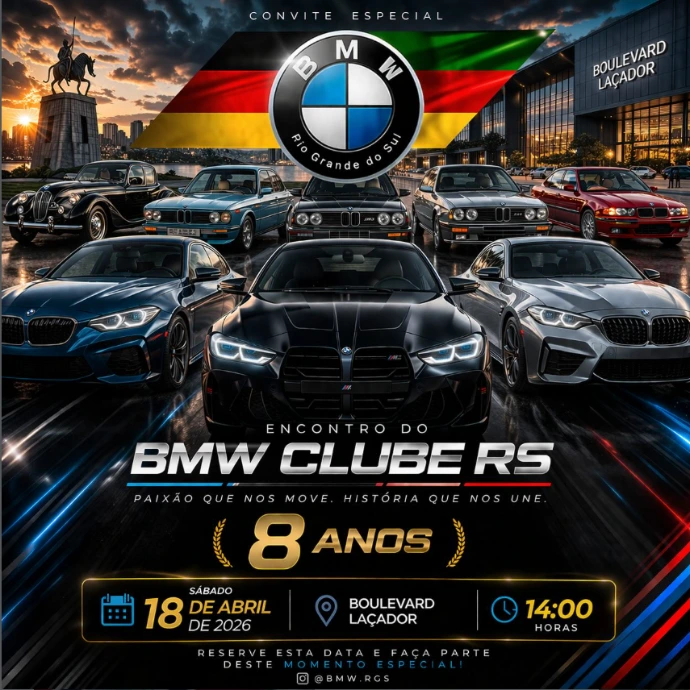 Para quem é de Poa e região, no próximo dia 18/4/26 terá o evento de 8 anos do BMW Clube RS. Será no Boulevard laçador (ao lado do aeroporto).